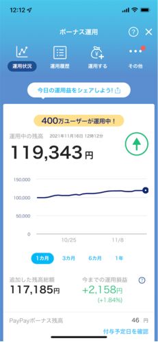 こんにちは、ハチナナです。 皆さんPayPayボーナス運用知ってますか? 皆さんも知っていますよね。 私も、今年の1月から始めたんですが、 なんと、、、 100,000円突破しました! めちゃくちゃうれしいです! PayPayボーナス運用始めてから設定を自動追加にして…